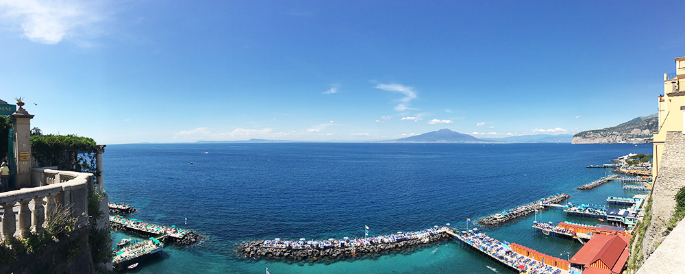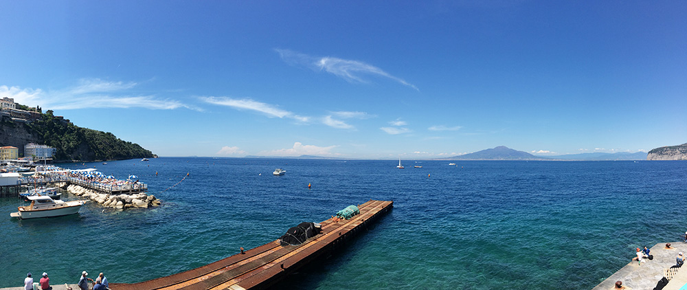 So. Sorrento. Von Neapel aus. Das heißt im Klartext: Von Anfangs- bis Endstation einmal die Küste lang. Yeeaahhiiii… Wir hatten mit 1h gerechnet. Tatsächlich waren es aber 1.5h. Wautsch. Unterwegs wurde wir aber wenigstens von den Musikern feat. den Fußballfans unterhalten. Kann man nicht meckern. An die Plastesitze hatten wir uns auch schon gut gewöhnt, Rückenschmerzen blieben aus. 1:0 für uns. Ha!