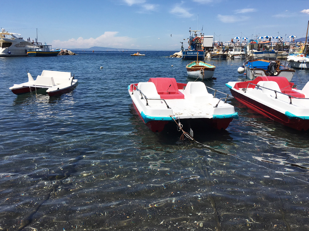 Eigentlich wollten wir zum Hafen, entschieden uns dann aber um und gingen Richtung “Strand”. Also eeeeigentlich wollten wir uuuuursprünglich zum “Bagni Della Regina Giovanna“, aber das war für zu Fuß dann leider doch zu weit weg. Zumal es auch hier wieder fleißig bergabundauf ging. Deswegen wurde es dann der kleine Ministrand in der Nähe. Hauptsache mal n bisschen Meer sehen und mit den Füßen ins Wasser gehen.