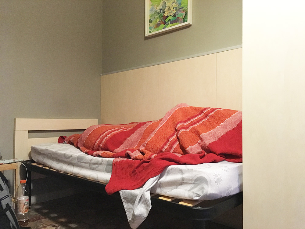 Und so rollerten wir Richtung Unterkunft, auf den kleinen Miniwegen – so Mini, dass man auch wirklich nur im Entenmarsch vorwärts kam – wurden freundlich vom Barmann nebenan begrüßt, der uns dann die letzten 2 m zur Wohnung eskortierte, dann noch freundlicher (weil mit dem Schwanz wedelnd – schon gut, das hätten wir vom Barmann auch nicht erwartet xD) von 3 kläffenden Mopphunden (Nein, keine Möpse. So Wischmopphunde halt (ob deswegen wohl der Boden so sauber war? Die Vermutung liegt nahe.). Diese kleinen, die immer kläffen und auch immer iwie schmuddelig aussehen, ihr wisst schon. Nette Wesen, aber trotzdem Moppis xD) und oben von der Tochter unserer Host(in) in Empfang genommen. Die Kleine kramte alle Brocken italo-englisch, die sie in der Schule gelernt hatte raus, hieß uns willkommen und zeigte uns die Räumlichkeiten. Ganz nett hier. Süßes Zimmer. Sogar mit kleinem Balkon und eigenem Bad. Fast schon hotelmäßig ausgestattet mit so kleinen Seifchen, Duschgel und so. Oh und dann wurden uns noch eilig kalte Getränke in unsere eigene kleine Kühlbox gestellt. Suuuuuper lieb. Wirklich total aufmerksam. Auch das gesamte Zimmer war mit viel Liebe eingerichtet. Ein kleine Gästebuch lag auf dem Schreibtisch und es gab sogar eine Worldmap mit Pins, auf der man sich verewigen konnte. Natalya – die HostMom, kam 5 min später dazu. Entschuldigte sich – wofür auch immer ^^- und wies uns dann noch mal ein. Zudem bot sie uns an, für morgen früh ein kleinen Frühstück zuzubereiten. Da konnten wir natürlich nicht “Nein” sagen, zumal dieses in den Bewertungen der vorherigen Gäste hochgelobt wurde. Auch sie war seeeeehr bemüht alles auf englisch zu erklären, strahlte dann aber von einem Ohr zum nächsten, als ich ihr auf italienisch antwortete xD
