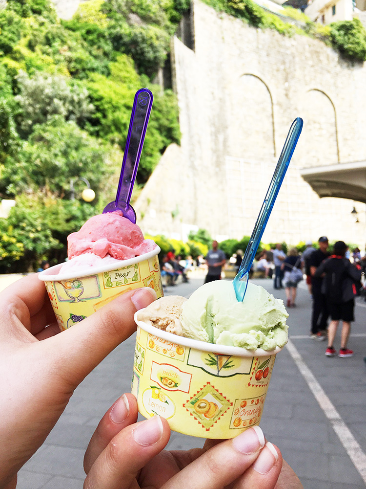 Natürlich war die Aussicht wunderwunderschön (Zieht man die ganzen Touris ab, die wie Ameisen umherströmten). GAR KEINE FRAGE. Die Reise dorthin und auch das Ganze auf und ab, war das auf alle Fälle wert… Aber wir beließen es dann doch bei “Ort no.1”, gönnten uns nach dem ganzen Rumkrakseln noch das obligatorische Eis des Tages (Becher 1: Zitrone + Joghurt, Becher 2: Pistazie + Kaffee).