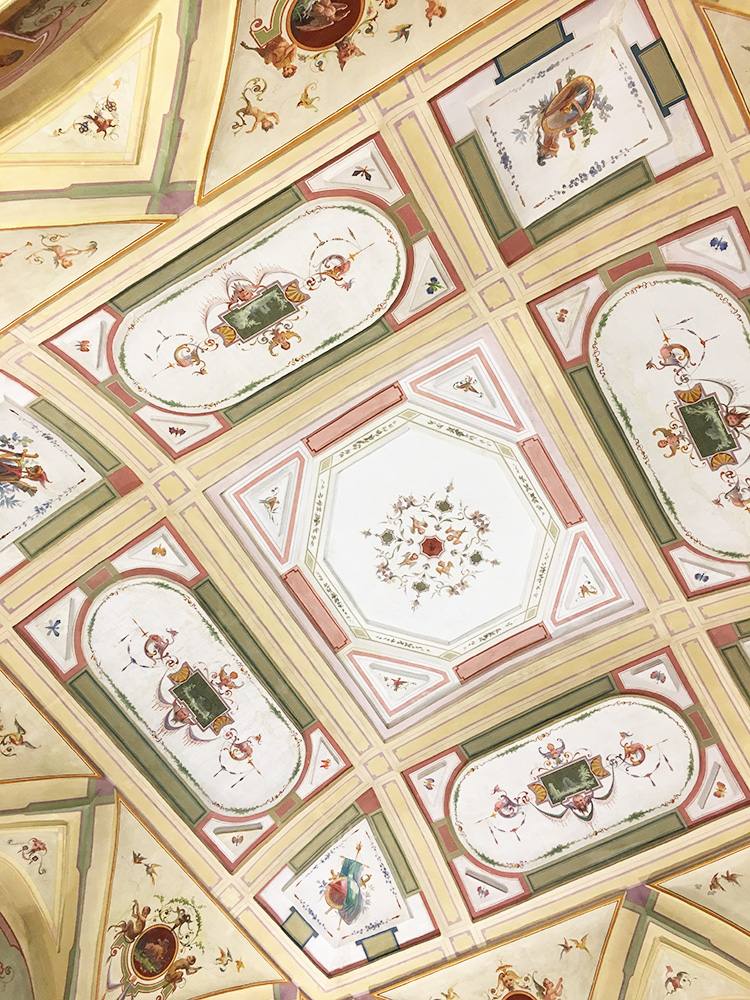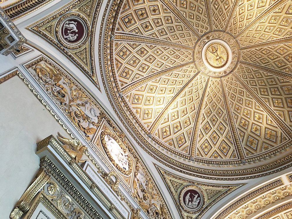 Wir kämpften uns also durch die dröfhundert Räume – ganz ehrlich, die Gänge zwischen den Räumen waren eigentlich fast schon schöner – ich weiß, Kunstbanause will man sagen… aber ganz ehrlich, diese Decken… wunderschön. Wieder so viele Details, so viele Bilder. Man sollte ihnen mehr Beachtung schenken – overdose an Kunst. Das ich das mal sagen würde, hätte ich mir auch nicht träumen lassen.