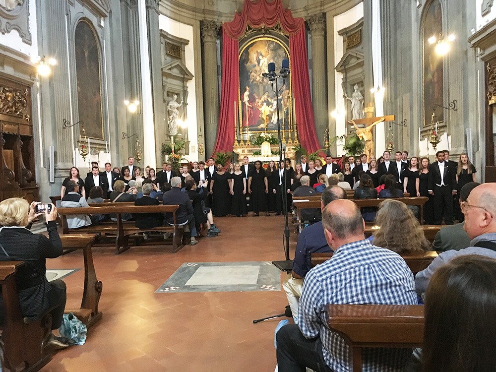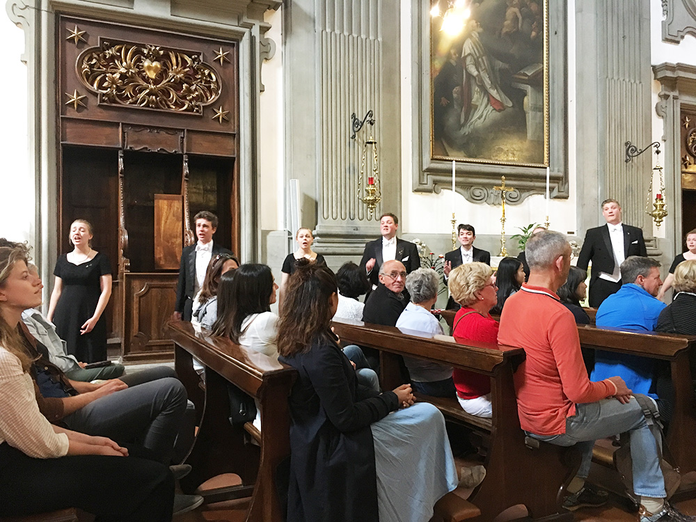 Nach der kurzen Kostprobe lud der “Coach” dann alle Anwesenden zu einem kleinen Konzert in der Kirche ein. Gerne! Wir gingen rein, sicherten uns gute Plätze (na gut, so gut waren sie dann doch nicht mehr, weil der Coach da die meiste Zeit auch stand. Wild fuchtelnd, groß gestikulierend und extrem schwer atmend und teilweise laut-flüsternd mitsang. #exorcsimneeded! Arme Schrehn, die saß genau dort an der Kante. Immer kurz davor die flache Rückhand des Coachs’ ins Gesicht geklatscht zu kriegen. xD)