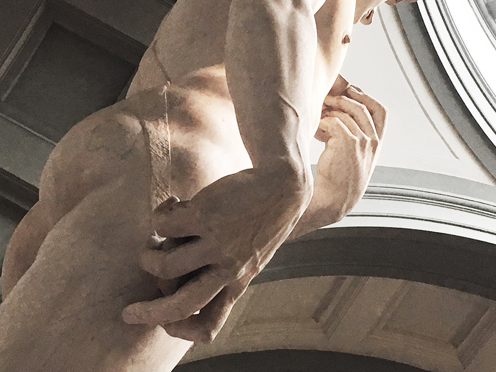 Er sieht schon gut aus. Wie er da so steht. Anmutig. Bereit für den Kampf. Mit seinen riesigen Händen und Füßen – erstaunlich auch, das es in vielen Nationen heißt… naja, ihr wisst schon was man über Männer mit großen Händen/Füßen sagt. Finde der gute David bestätigt das jetzt nicht ganz. Aber der Rest gleicht das schon aus.